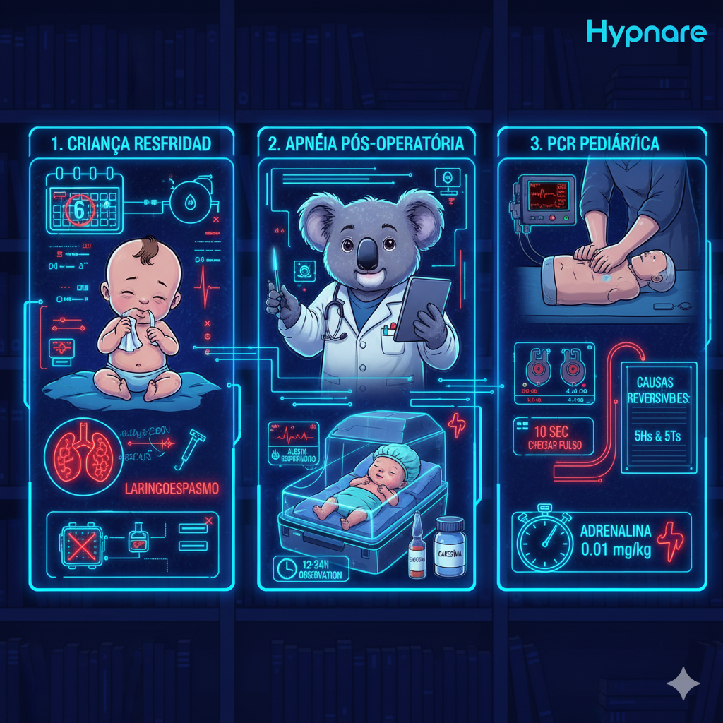 Este guia fornece ao anestesiologista Hypnare as informações essenciais para enfrentar os desafios do manejo pediátrico, desde a avaliação pré-operatória de crianças com IVAS até a resposta rápida e eficaz a uma PCR pediátrica, visando sempre o melhor desfecho para os nossos pequenos pacientes.