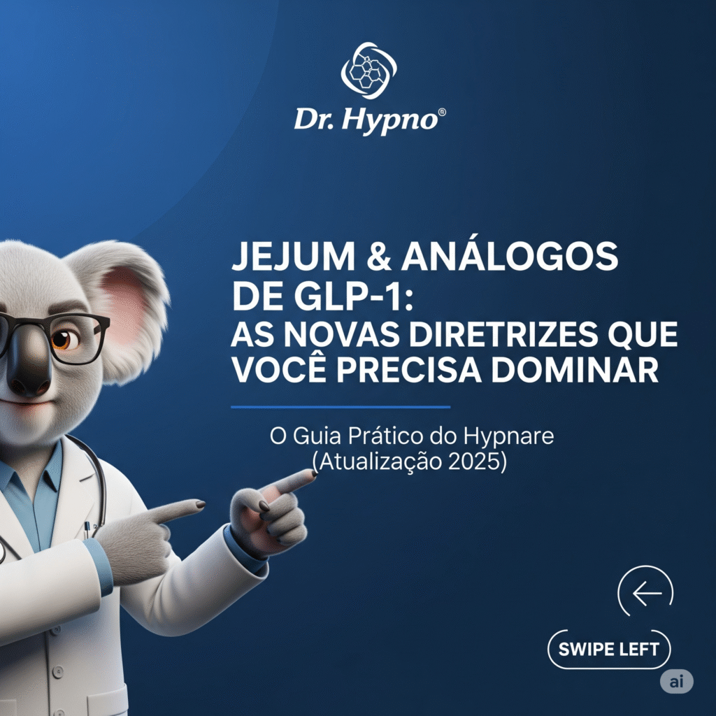 • Consenso emergente: não suspender rotineiramente; estratificar risco; reforçar jejum moderno (líquidos claros até 2 h).